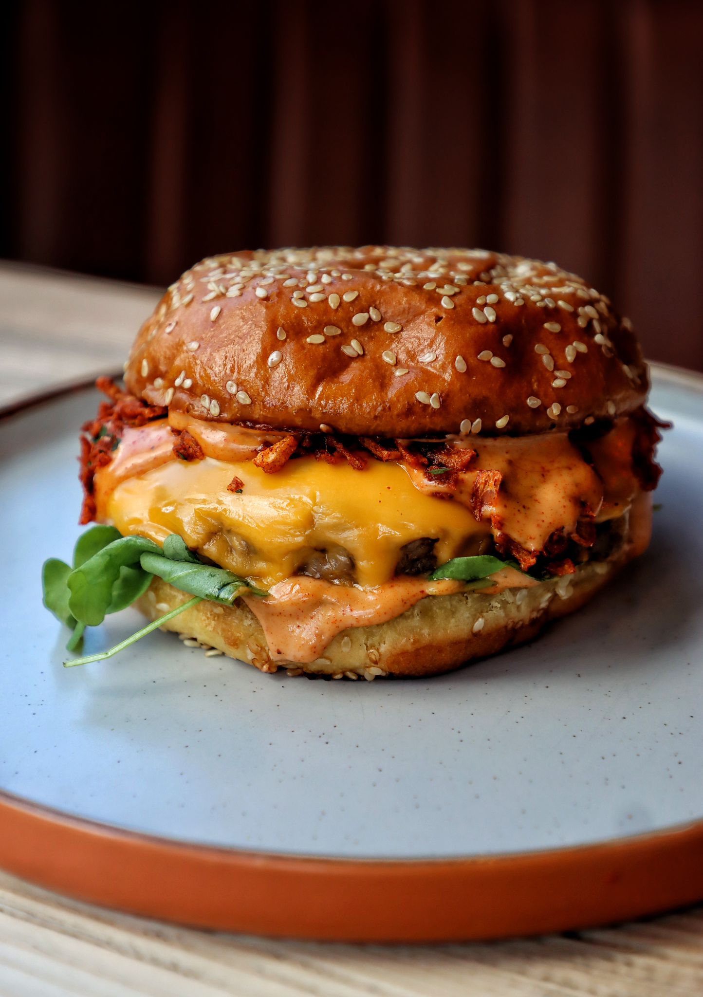 Simple but cocky. A flame-grilled 6oz beef patty, topped with melted American cheese, crispy onions, fresh rocket, and finished with our no-nonsense flair. Proof that sometimes, less is more.