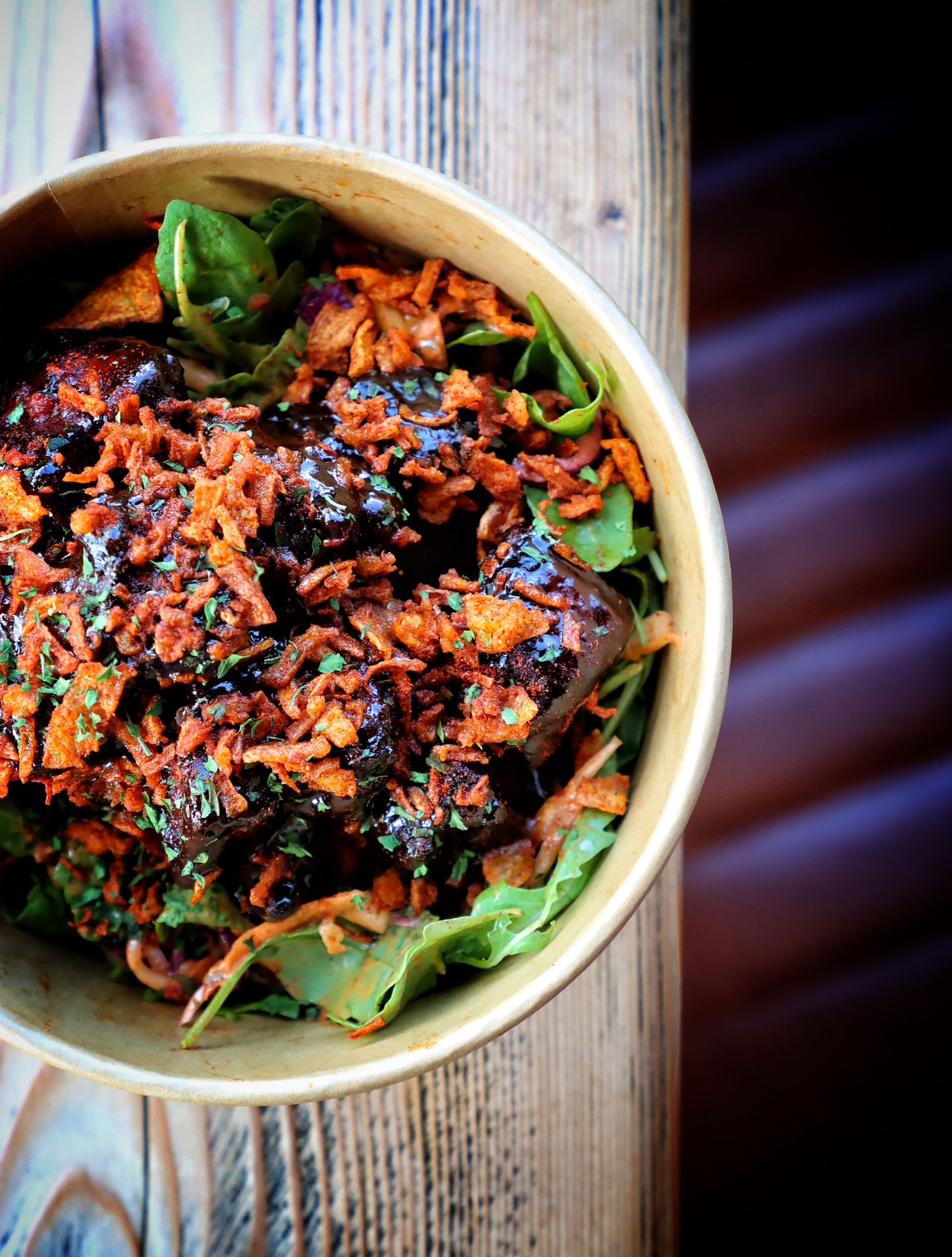 Pulled BBQ jackfruit tossed with vegan garlic mayo and paprika onions. Big on smoke and spice, proving plant-based doesn’t mean playing it safe.
